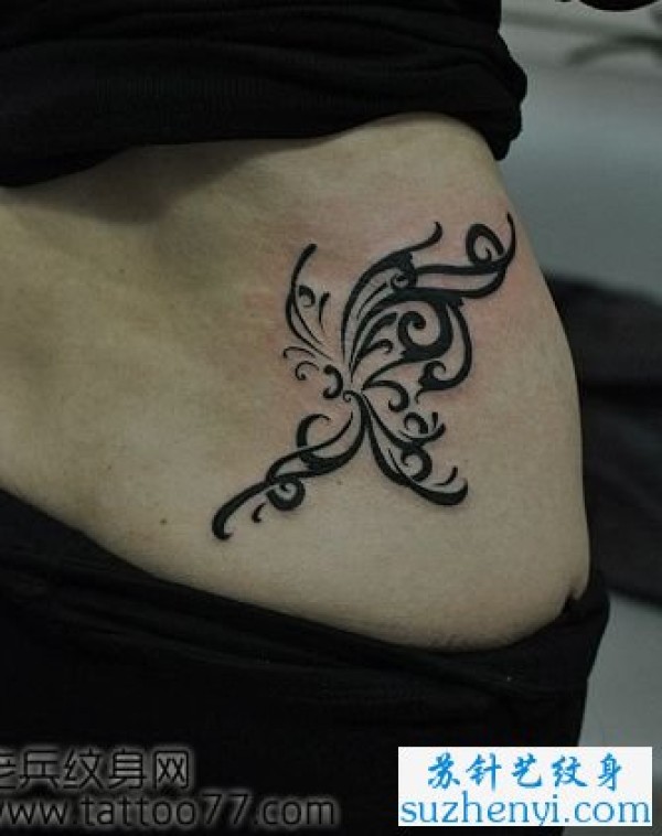 腰部图腾蝴蝶纹身_蝴蝶纹身图案大全_纹身图吧