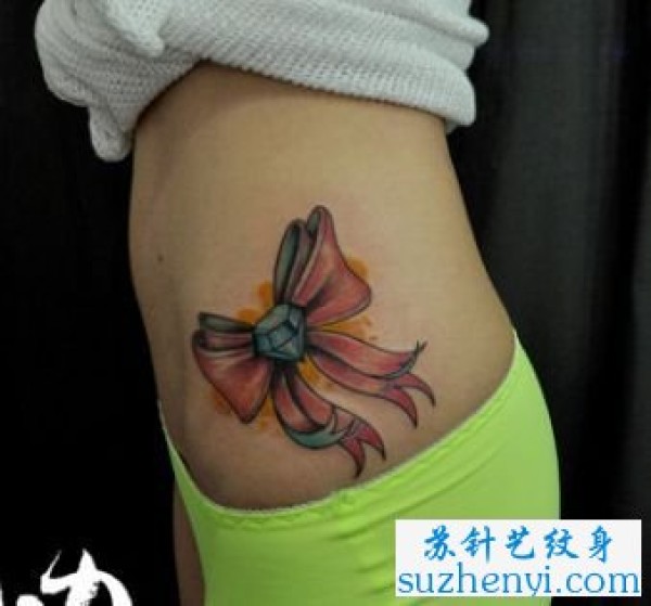 腰部钻石蝴蝶结纹身_蝴蝶纹身图案大全_纹身图吧