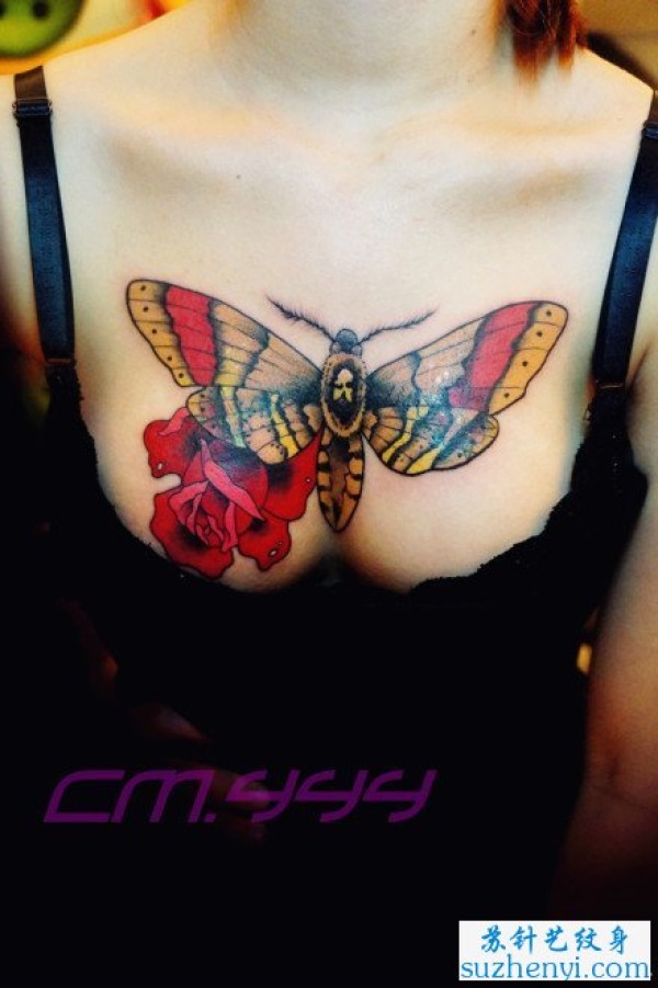 前胸彩色蝴蝶纹身_蝴蝶纹身图案大全_纹身图吧