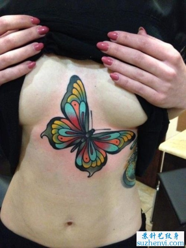 胸部彩色蝴蝶纹身_蝴蝶纹身图案大全_纹身图吧