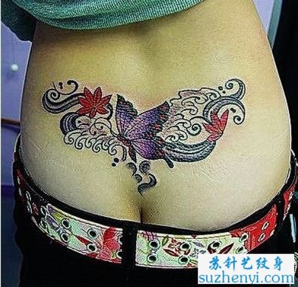 腰部彩色蝴蝶纹身_蝴蝶纹身图案大全_纹身图吧