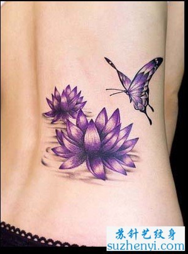 后腰蝴蝶莲花纹身_蝴蝶纹身图案大全_纹身图吧