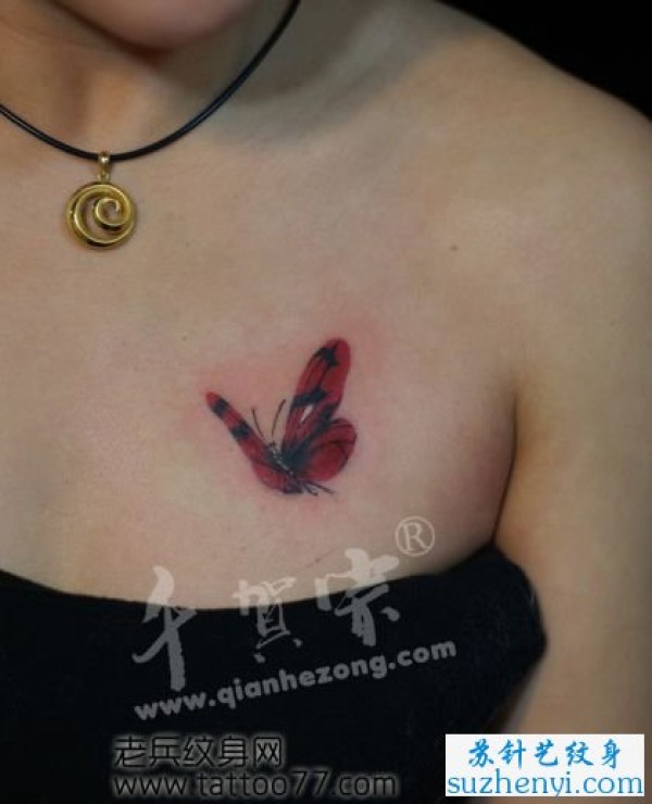 胸部唯美的蝴蝶纹身_蝴蝶纹身图案大全_纹身图吧