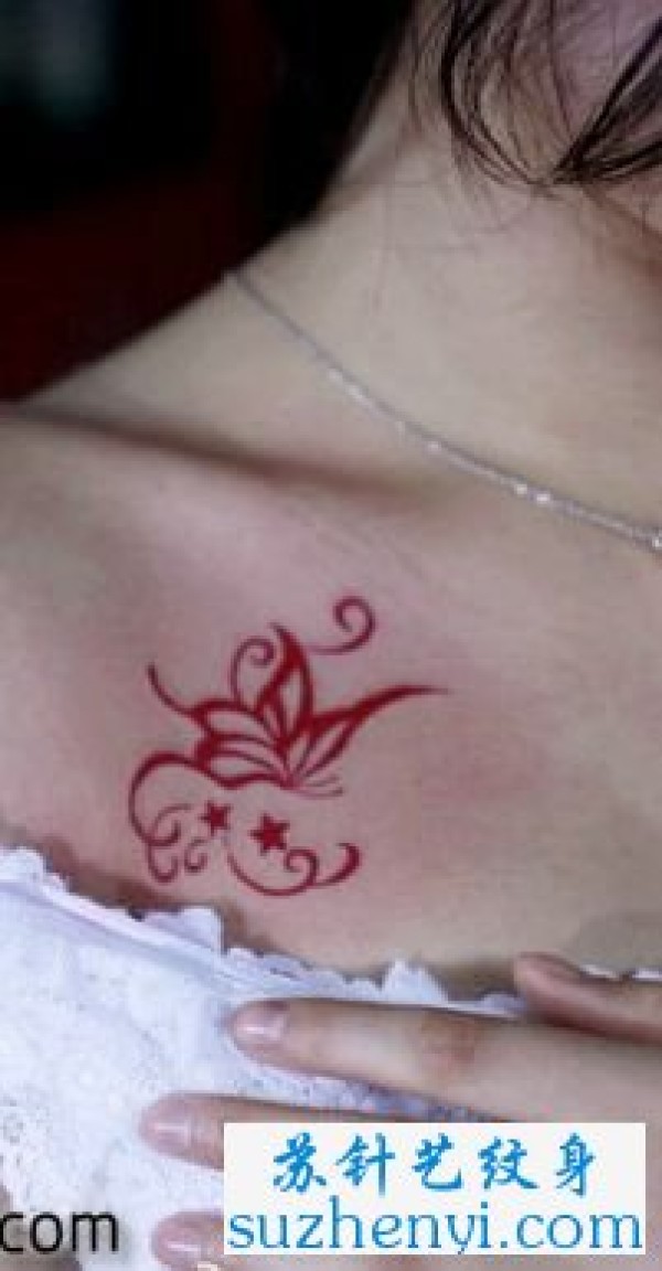 胸部彩色图腾蝴蝶纹身_蝴蝶纹身图案大全_纹身图吧