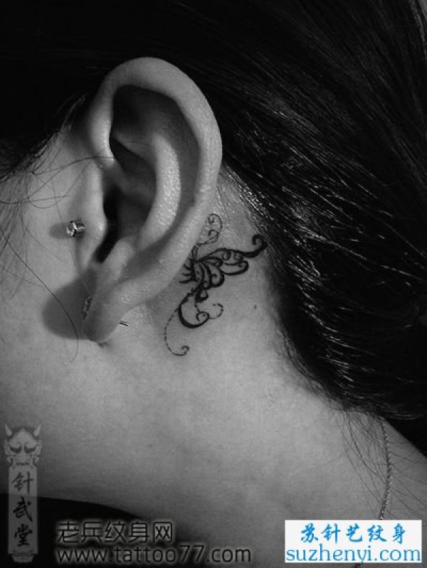 耳部图腾蝴蝶纹身_蝴蝶纹身图案大全_纹身图吧