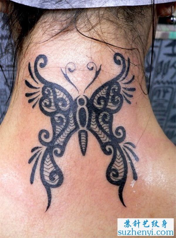 颈部图腾蝴蝶纹身_蝴蝶纹身图案大全_纹身图吧