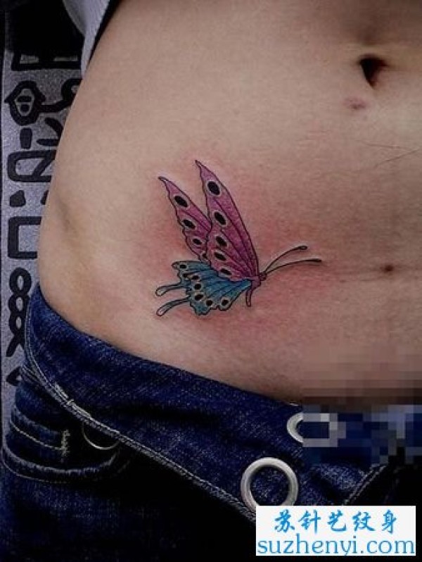 腰部彩色蝴蝶纹身_蝴蝶纹身图案大全_纹身图吧