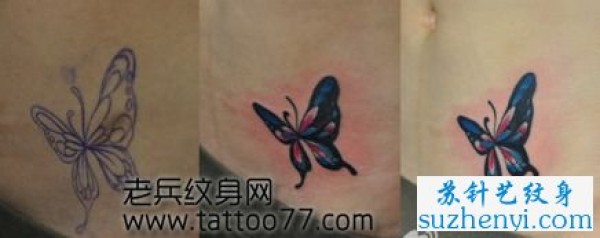 腰部彩色蝴蝶纹身_蝴蝶纹身图案大全_纹身图吧