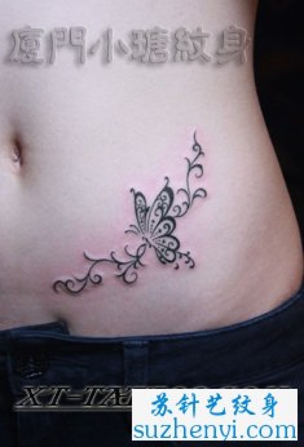 腹部图腾蝴蝶藤蔓纹身_蝴蝶纹身图案大全_纹身图吧