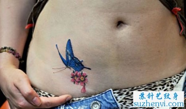 腰部彩色蝴蝶纹身_蝴蝶纹身图案大全_纹身图吧