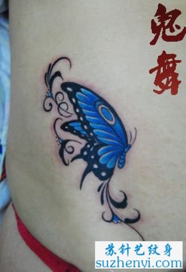 腹部蝴蝶纹身_蝴蝶纹身图案大全_纹身图吧