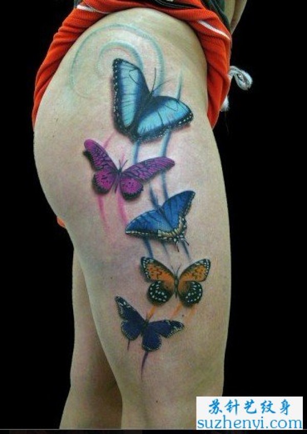 臀部彩色蝴蝶纹身_蝴蝶纹身图案大全_纹身图吧