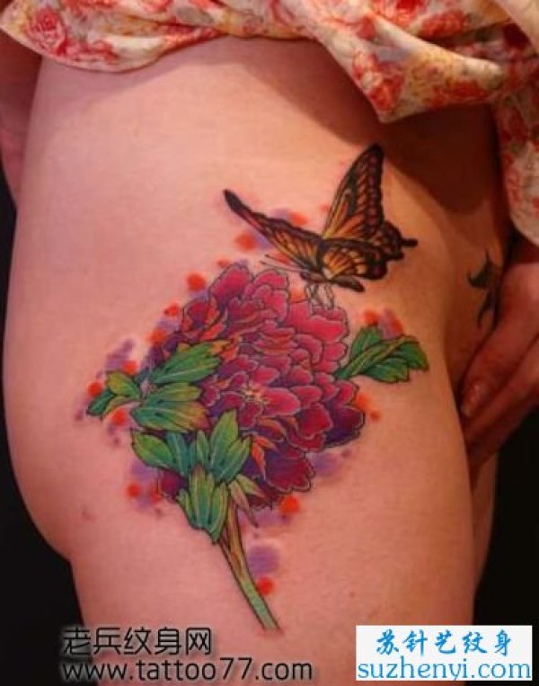臀部牡丹蝴蝶纹身_蝴蝶纹身图案大全_纹身图吧