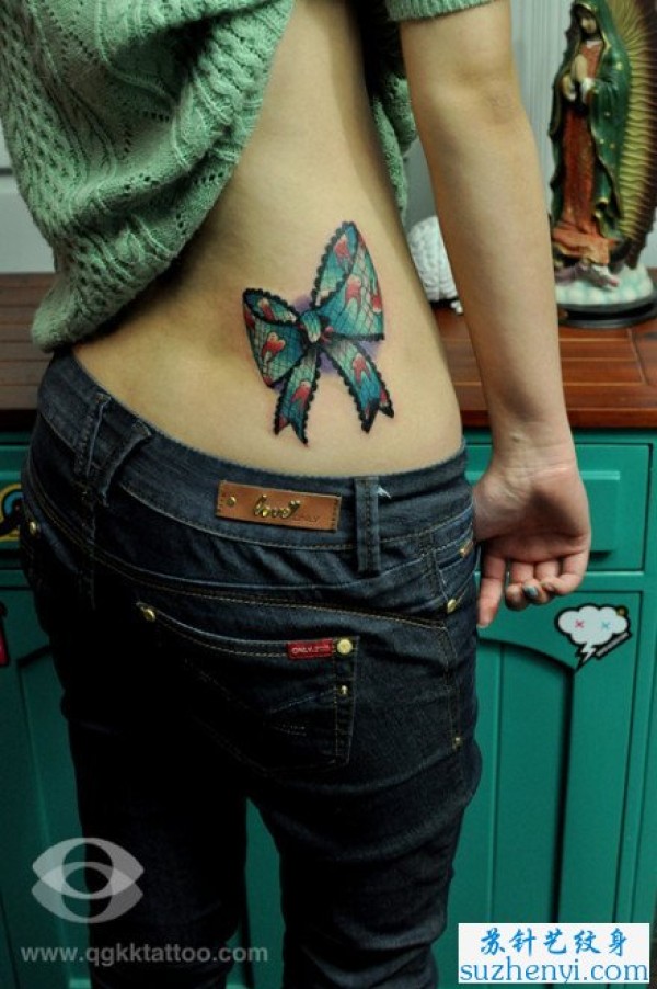腰部的蕾丝蝴蝶结纹身_蝴蝶纹身图案大全_纹身图吧