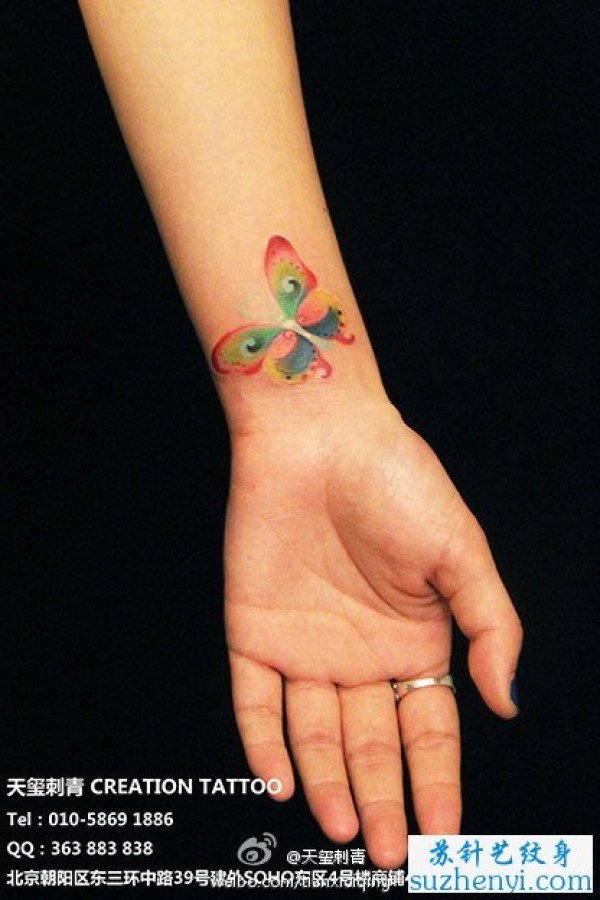 手腕的彩色蝴蝶纹身_蝴蝶纹身图案大全_纹身图吧