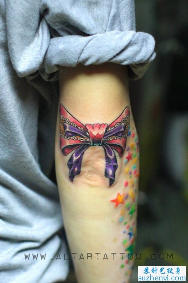 手臂蝴蝶结纹身_蝴蝶纹身图案大全_纹身图吧