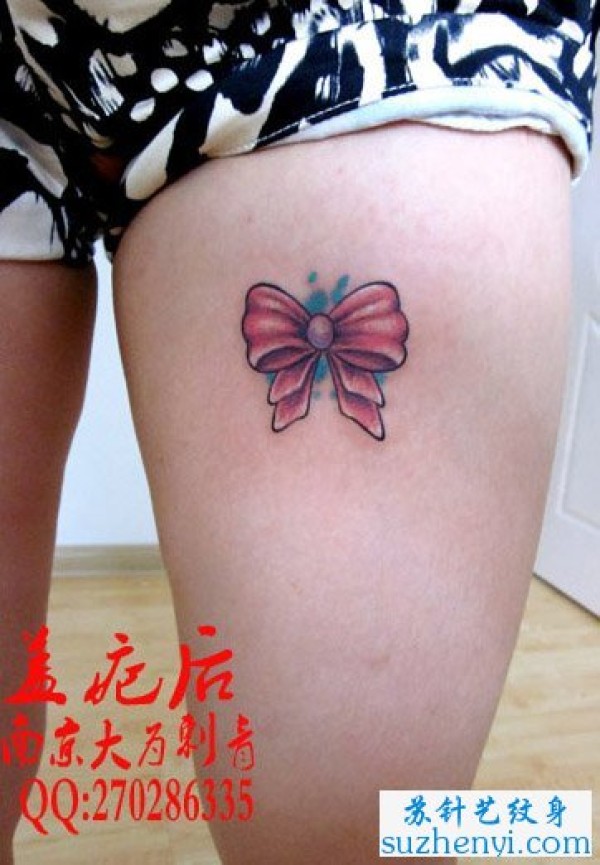 腿部蝴蝶结纹身_蝴蝶纹身图案大全_纹身图吧