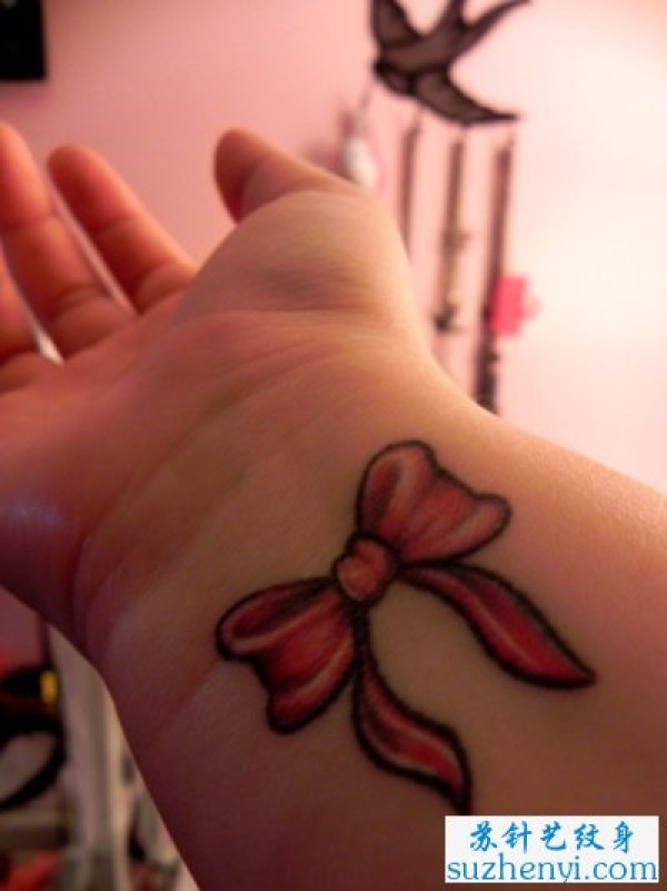 手腕处小巧的蝴蝶结纹身_蝴蝶纹身图案大全_纹身图吧