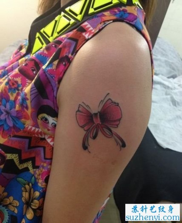 手臂小巧的蝴蝶结纹身_蝴蝶纹身图案大全_纹身图吧