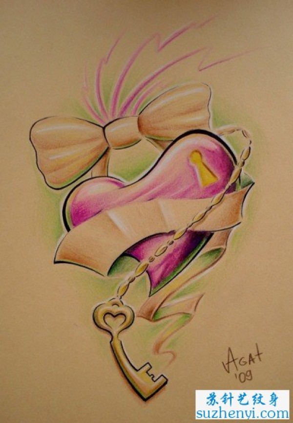 蝴蝶结钥匙纹身_蝴蝶纹身图案大全_纹身图吧