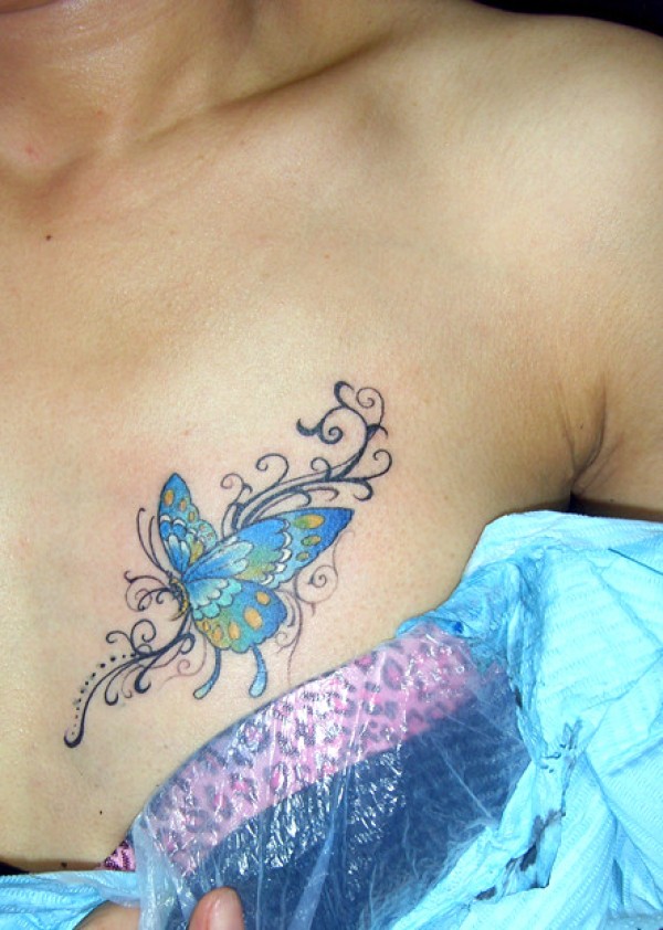 胸前蝴蝶纹身_蝴蝶纹身图案大全_纹身图吧