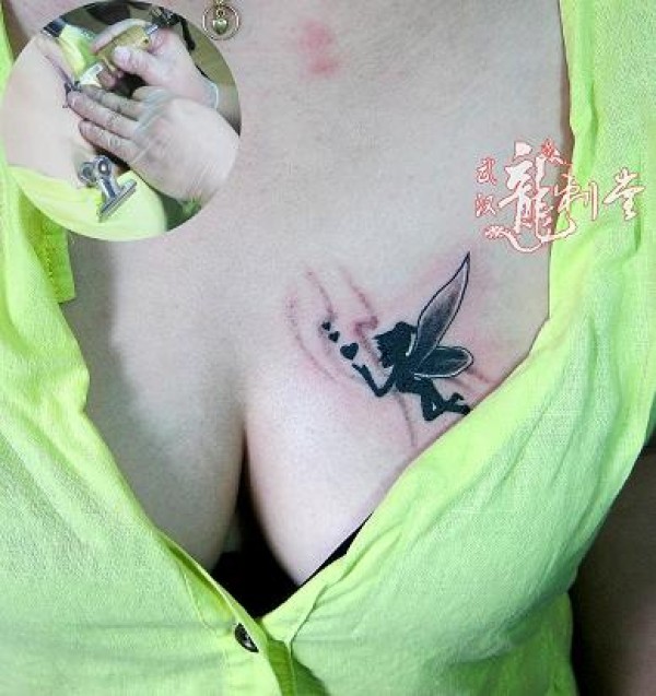 胸部蝴蝶仙子纹身武汉技术好的纹身_蝴蝶纹身图案大全_纹身图吧