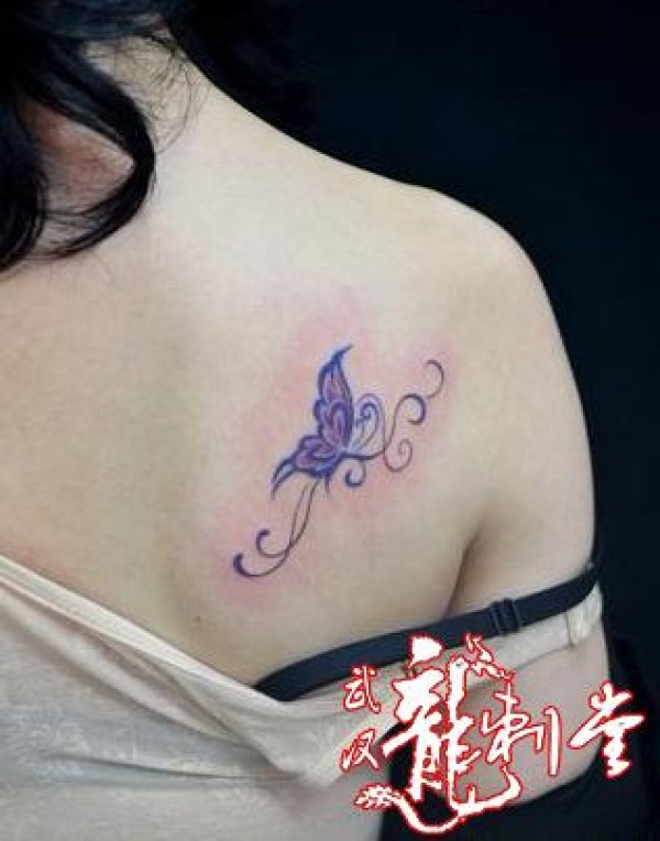肩胛藤条蝴蝶纹身_蝴蝶纹身图案大全_纹身图吧