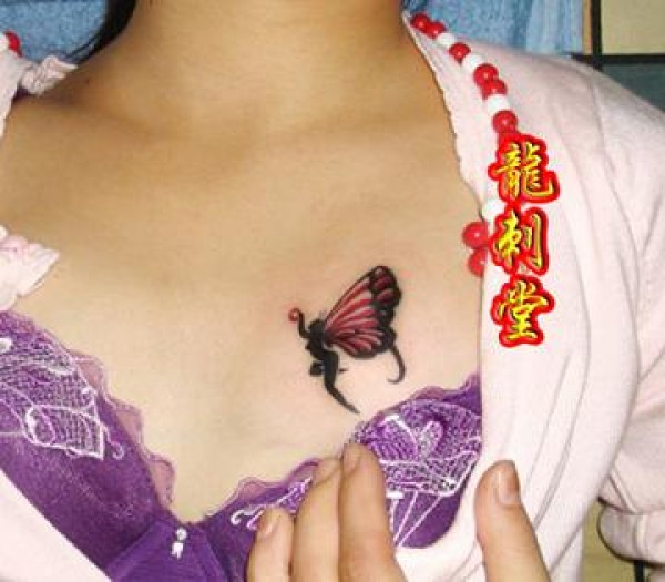 蝴蝶仙子纹身胸部纹身武汉纹身_蝴蝶纹身图案大全_纹身图吧