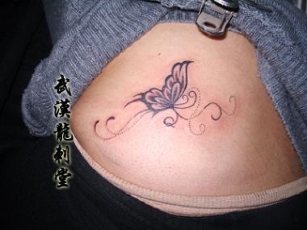 女人腰部图腾蝴蝶纹身为汉口纹身顾客打造_蝴蝶纹身图案大全_纹身图吧