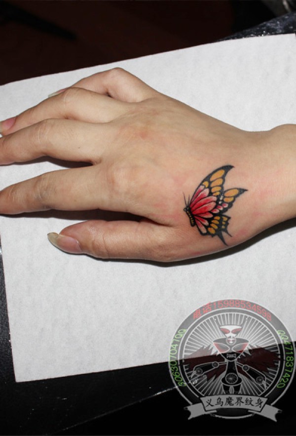 手背彩色蝴蝶纹身_蝴蝶纹身图案大全_纹身图吧
