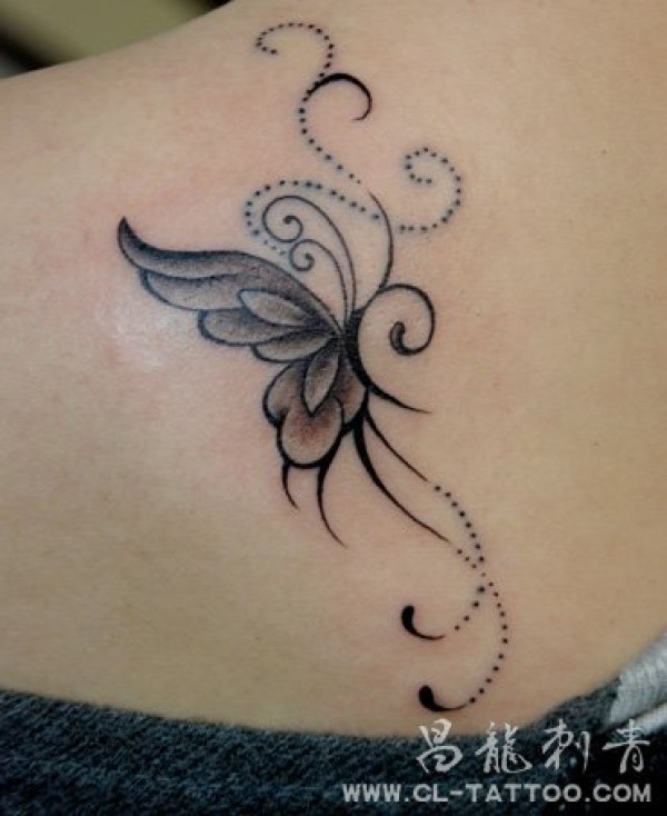 肩部图腾蝴蝶_女生黑白_蝴蝶纹身图案大全_纹身图吧