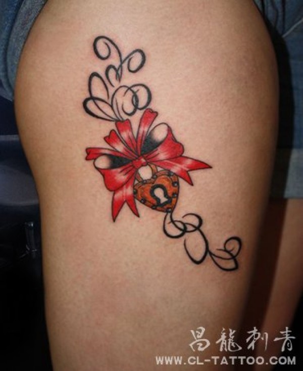 心锁蝴蝶结_女生彩色_蝴蝶纹身图案大全_纹身图吧
