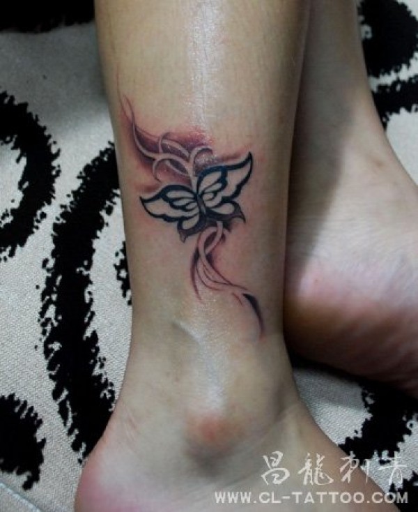 脚踝图腾蝴蝶_女生黑白_蝴蝶纹身图案大全_纹身图吧