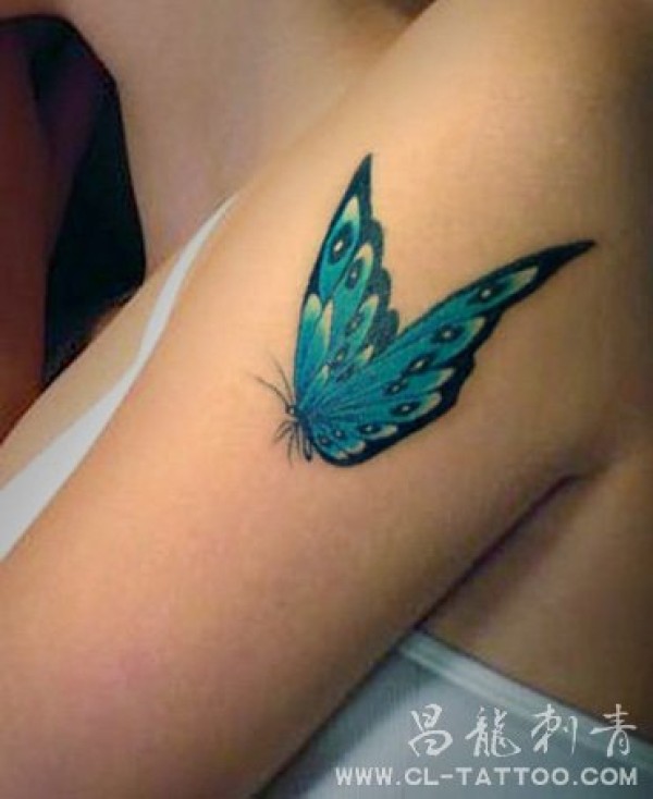 女生手臂彩色蝴蝶_女生彩色_蝴蝶纹身图案大全_纹身图吧