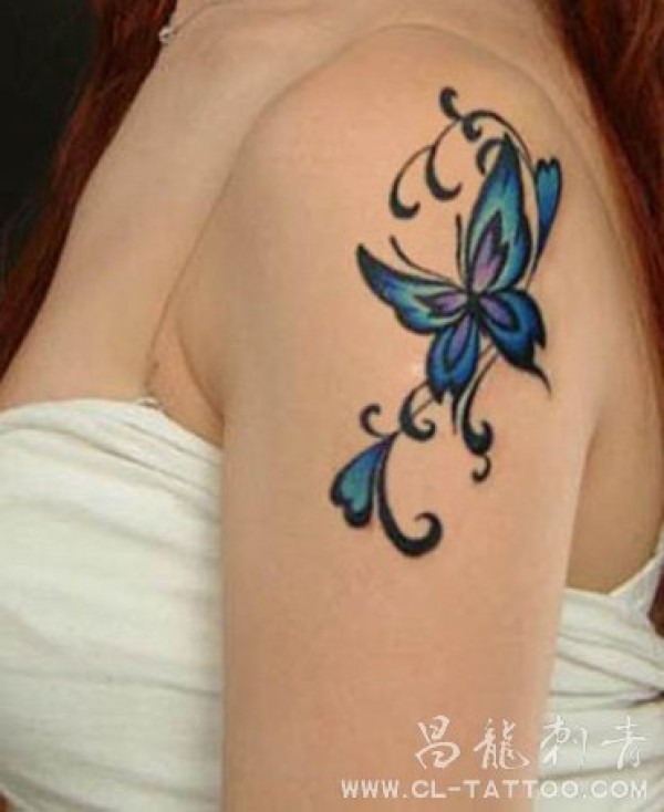 手臂彩色蝴蝶纹身_蝴蝶纹身图案大全_纹身图吧
