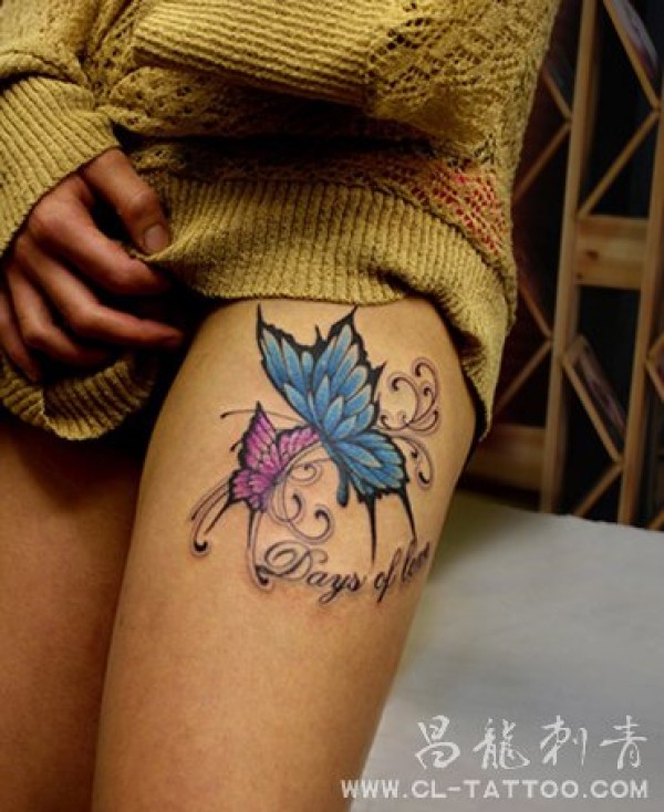 腿部蝴蝶纹身_蝴蝶纹身图案大全_纹身图吧