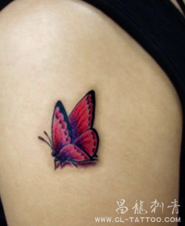 手臂立体蝴蝶_女生彩色_蝴蝶纹身图案大全_纹身图吧