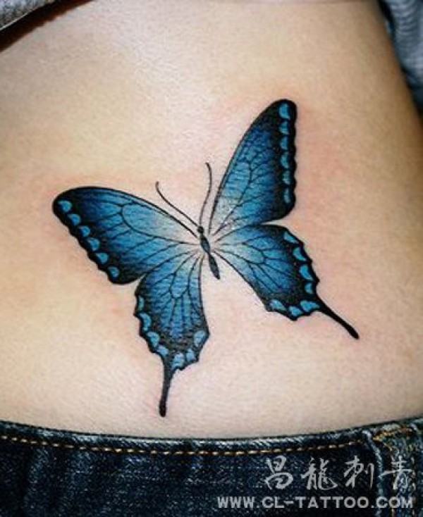 腰部彩色蝴蝶纹身_蝴蝶纹身图案大全_纹身图吧