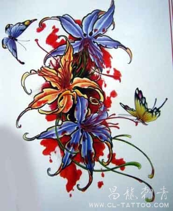 蝶恋花蝴蝶纹身女人花纹身福州南街纹身_经典_蝴蝶纹身图案大全_纹身图吧