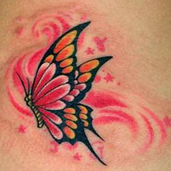 腰部彩色蝴蝶纹身_蝴蝶纹身图案大全_纹身图吧