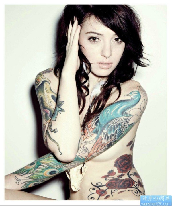 花臂孔雀tattoogirl纹身图案_花臂纹身图案大全_纹身图吧