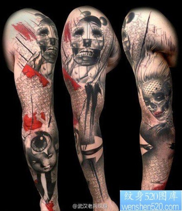 一组欧美骷髅花臂纹身图案_花臂纹身图案大全_纹身图吧