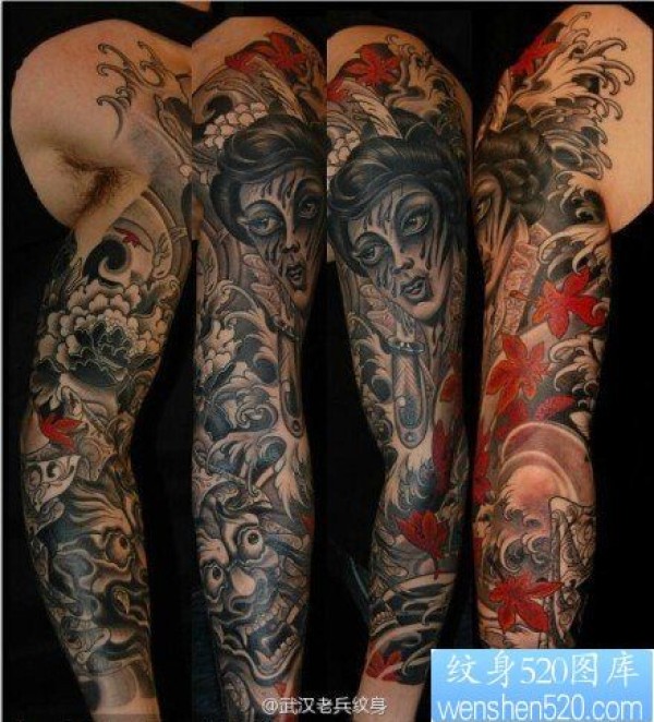 抽烟艺妓个性花臂纹身图案图片_花臂纹身图案大全_纹身图吧