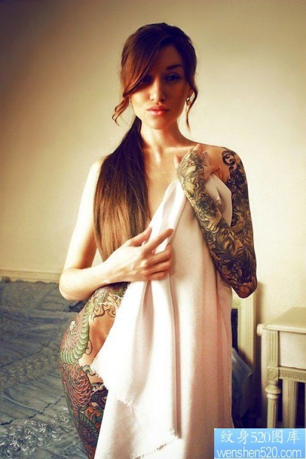 个性花臂纹身美女图案图片_花臂纹身图案大全_纹身图吧