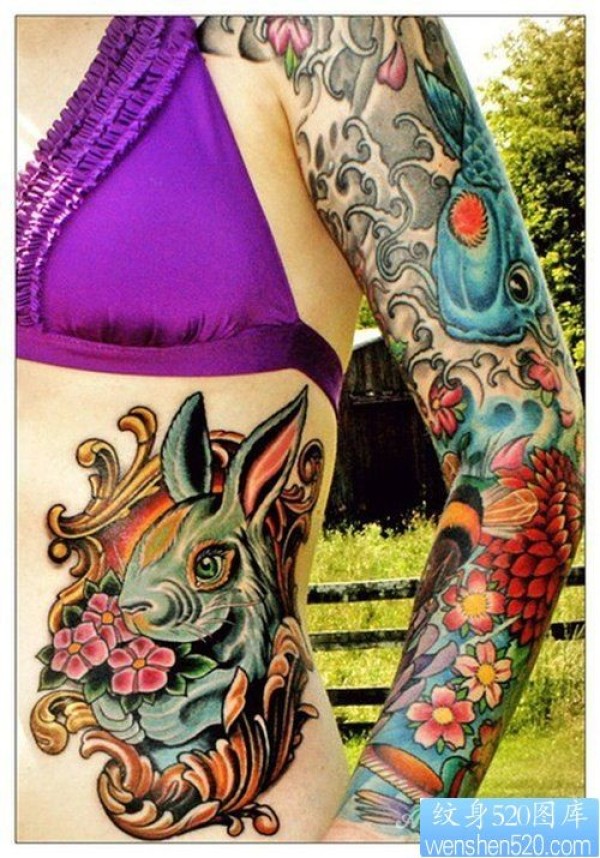个性花臂纹身美女图案图片_花臂纹身图案大全_纹身图吧
