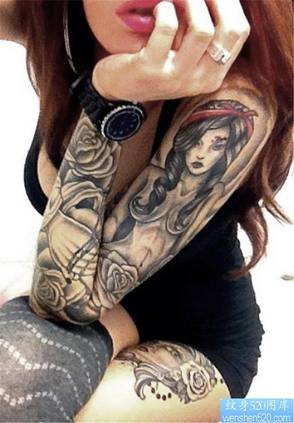 个性花臂纹身美女图案图片_花臂纹身图案大全_纹身图吧