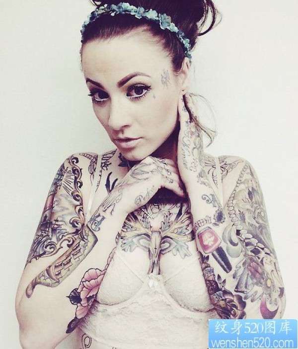 个性狂野美女霸气花臂纹身图案图片_花臂纹身图案大全_纹身图吧