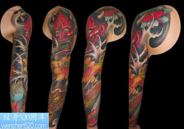 般若龙荷花纹身花臂纹身_花臂纹身图案大全_纹身图吧