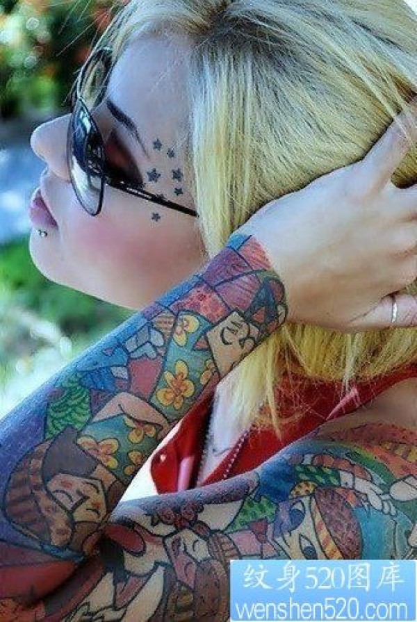 一款女人彩色花臂纹身图案_花臂纹身图案大全_纹身图吧