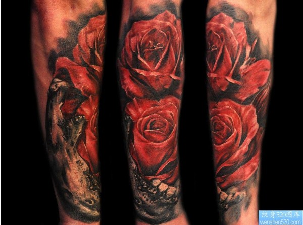 水墨小花臂玫瑰纹身图案图片_花臂纹身图案大全_纹身图吧